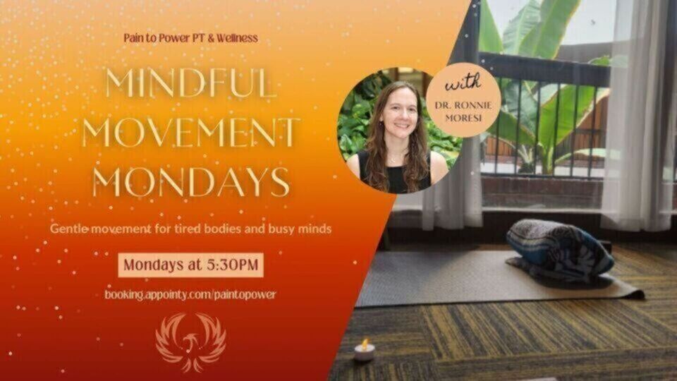 Mindful Movement Mondays with Dr. Ronnie Moresi blends practices from yoga, tai chi, and restorative movement in a way that welcomes everyone, especially those living with pain, injuries, or limited flexibility. Drawing from the intelligence of a physical therapy approach, movements are modified for each person, creating a safe environment where people can move without fear. Every class closes with guided meditation to calm the nervous system, which is especially powerful for those navigating chronic pain, trauma, or stress. The goal is to meet you where you are and help you feel more connected, capable, and at home in your own body and mind.